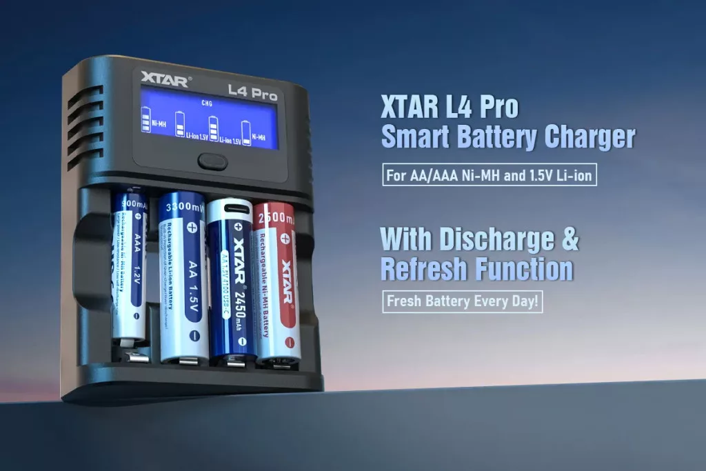 XTAR L4 Pro chytrá nabíječka pro AA/AAA 1,2V NI-MH a 1,5V lithiové baterie